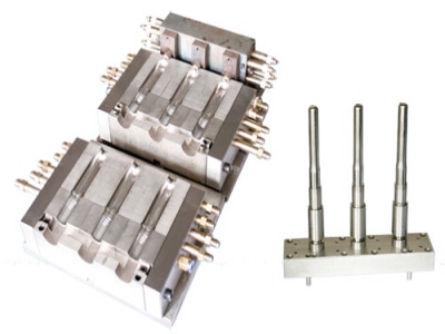 公司可為廣大用戶提供:吹塑成型機和注射成型機配套的“擠出”吹塑模、“擠出”吹瓶模、三工位“注--吹”模、PET瓶坯模、PET瓶坯模、熱流道瓶蓋模等,公司專注注吹模具設計方面技術,可為使用國外各種品牌(如美國的WHEATON、美國的JOMAR、意大利的UNILOY等)全自動三工位“注吹”成型機的吹瓶廠商提供模具配套,同時也可為國內全自動三工位“注吹”成型機制造公司提供模具配套服務。